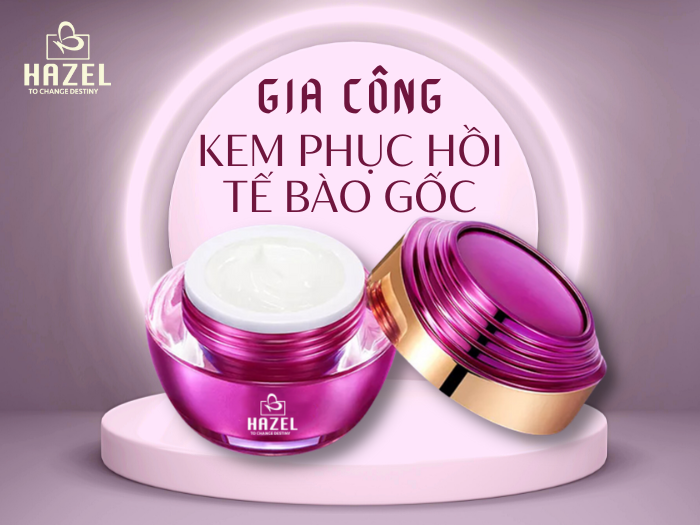 Nhà máy gia công mỹ phẩm HAZEL COSMETIC nghiên cứu và cho ra công thức gia công kem phục hồi da tế bào gốc. Đây là sản phẩm làm đẹp được sản xuất dựa trên công nghệ tế bào gốc, có nguồn gốc từ thiên nhiên, phát triển từ các tế bào thực vật.
